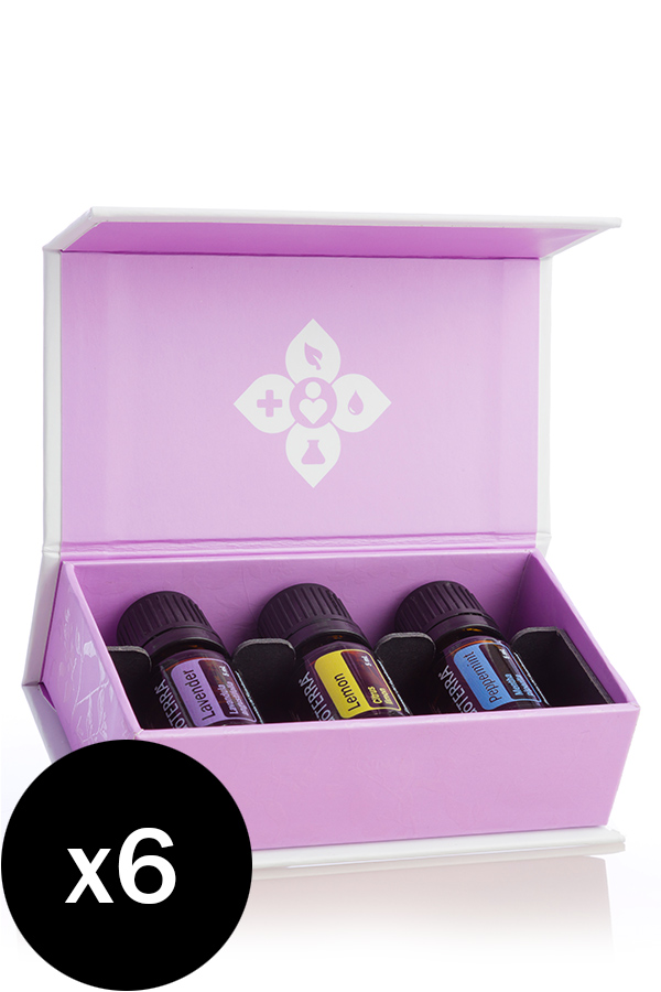 도테라를 소개하는 대표적인 에센셜 오일 라벤더, 레몬, 페퍼민트 각 5ml로 구성된 인트로 키트를 PV볼륨은 up! 가격은 down!으로 만나보실 수 있는 인트로 키트 6팩입니다.